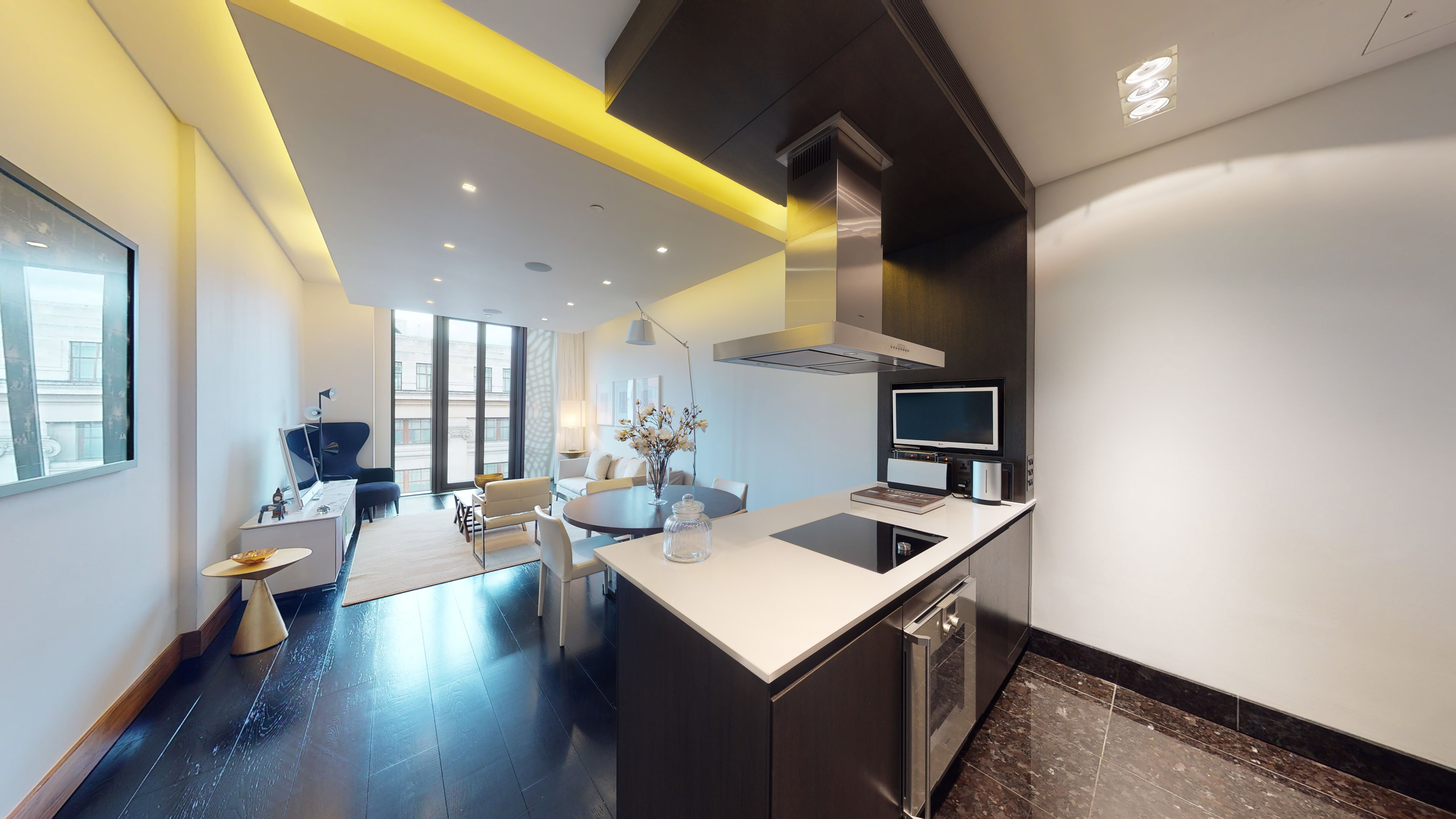 Apartment 4.02 offers 966 sq ft (90 sq m) of high quality, furnished lateral space, including one bedroom and one bathroom and features stunning north-facing views across Oxford Street.